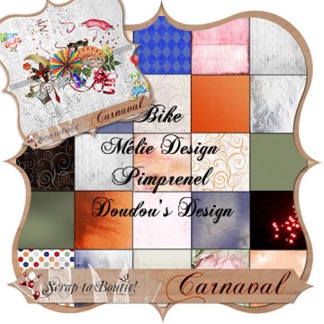 Pimrenel et des créatrices de la boutique Scraptaboutic ont collaboré pour créer un kit appelé Carnaval. Pas besoin de vous expliquer le thème du kit ;). Je n’avais pas de photo de carnaval mais comme vous pouvez le voir, on peut très bien scraper sur d’autres thèmes.